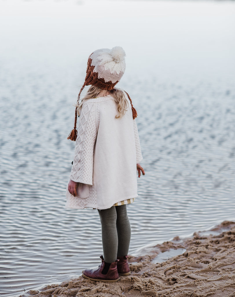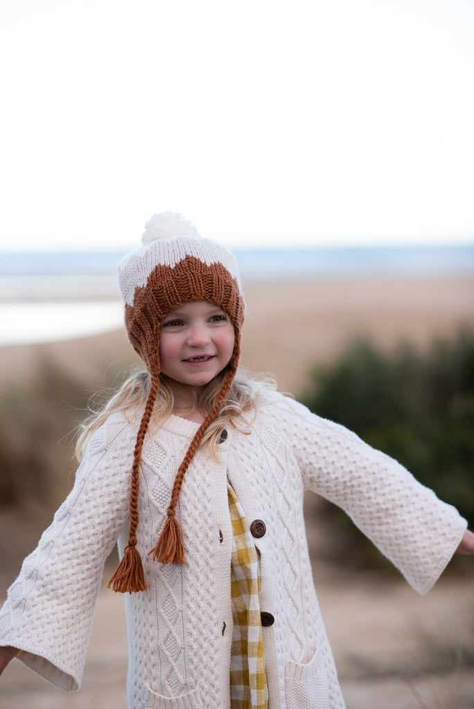The side ear flaps with plaited ties are perfect to protect little ears.