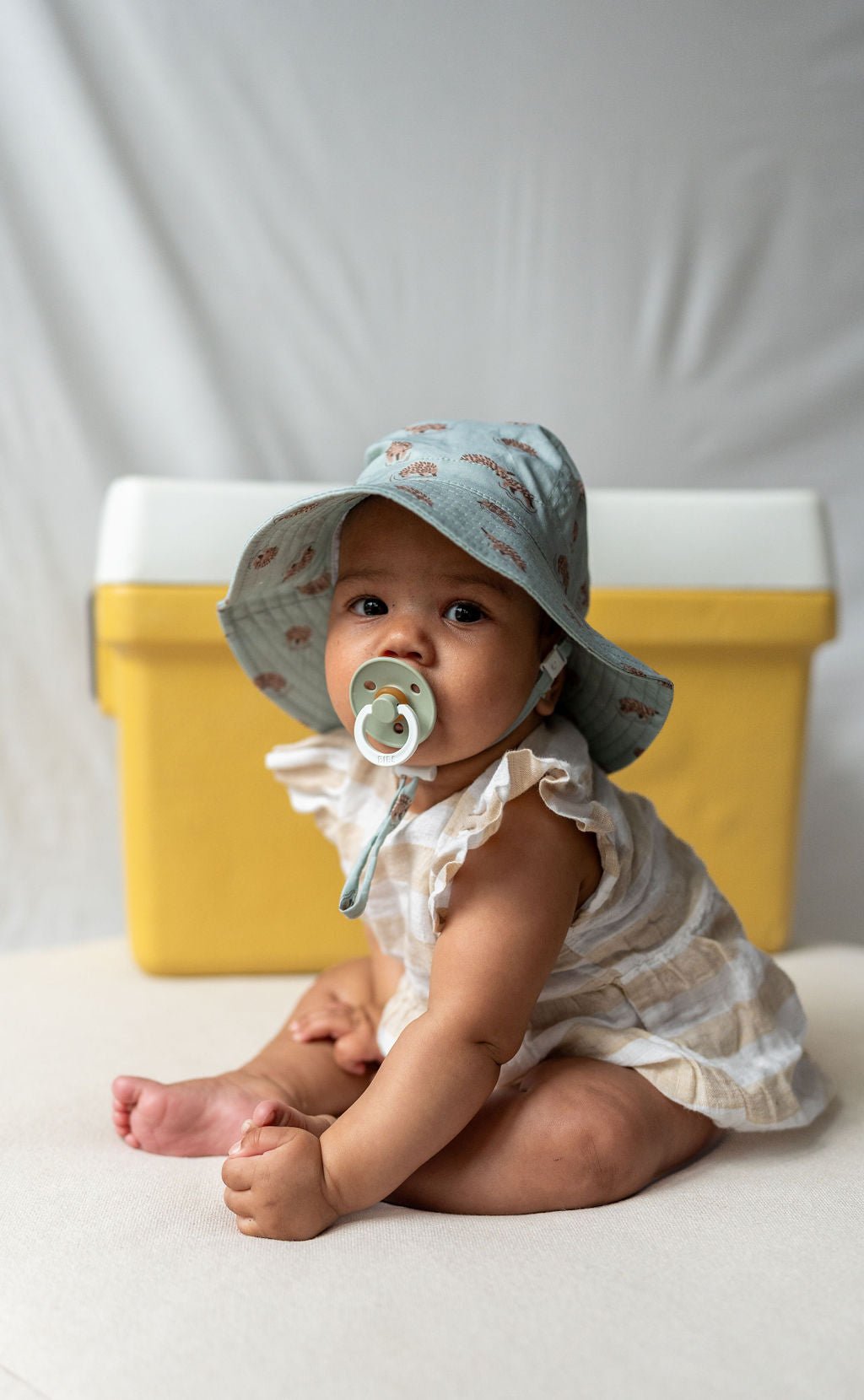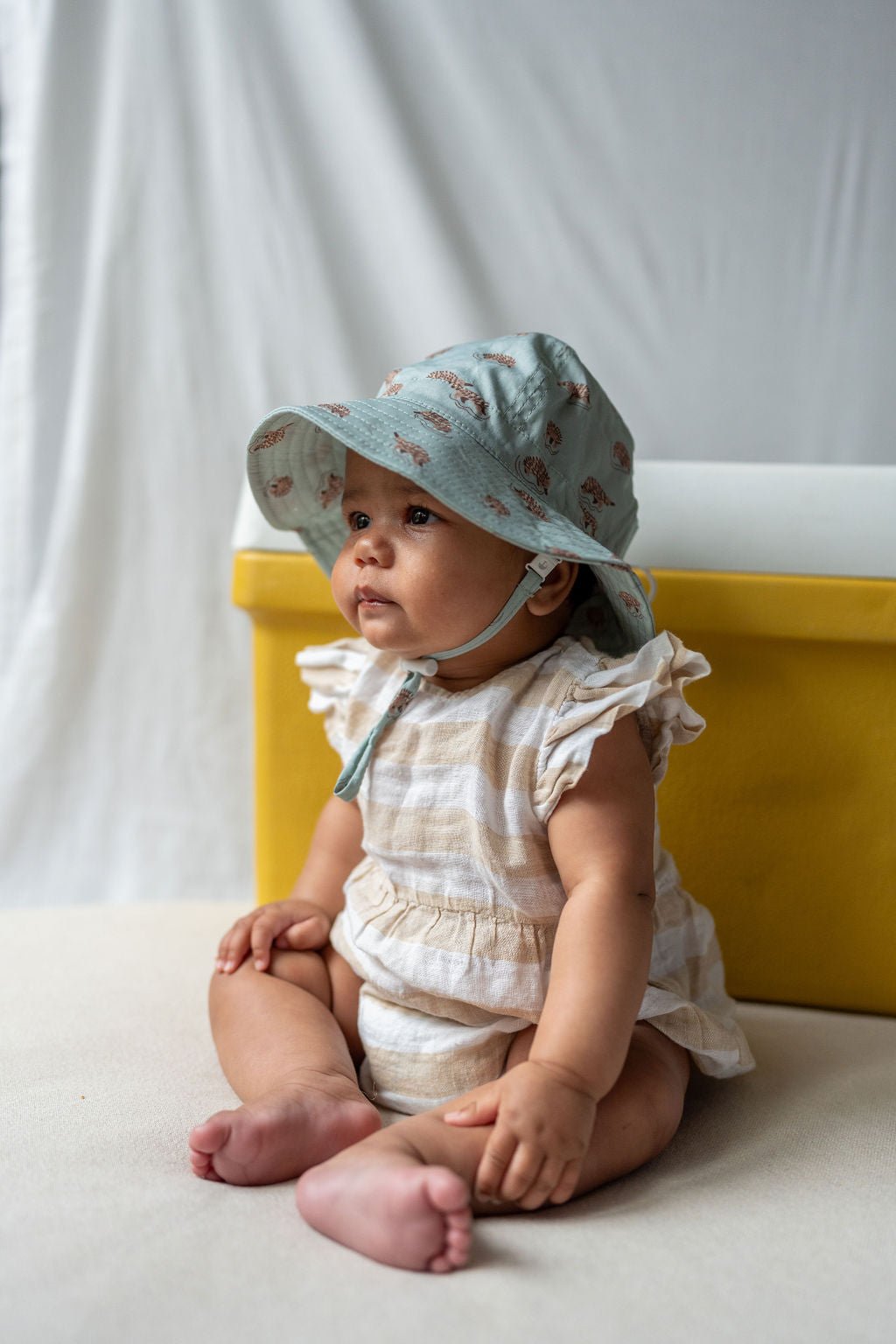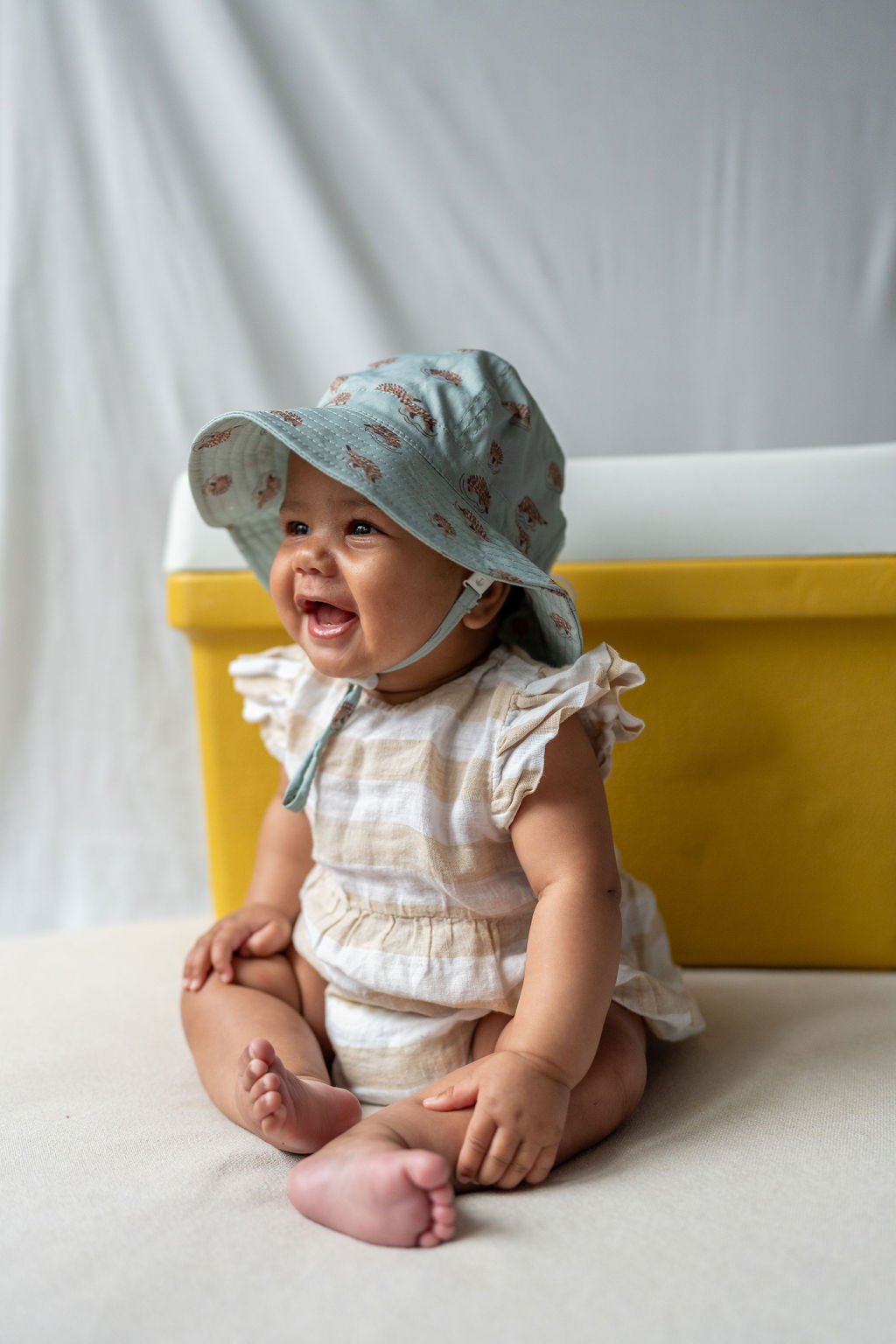 Baby sun hat with a fun Echidna print designed in Melbourne by Jacinta Weir from Two Little Ducklings.