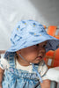 Baby sun hat with a fun rocket ship print designed in Melbourne by Jacinta Weir from Two Little Ducklings.