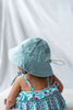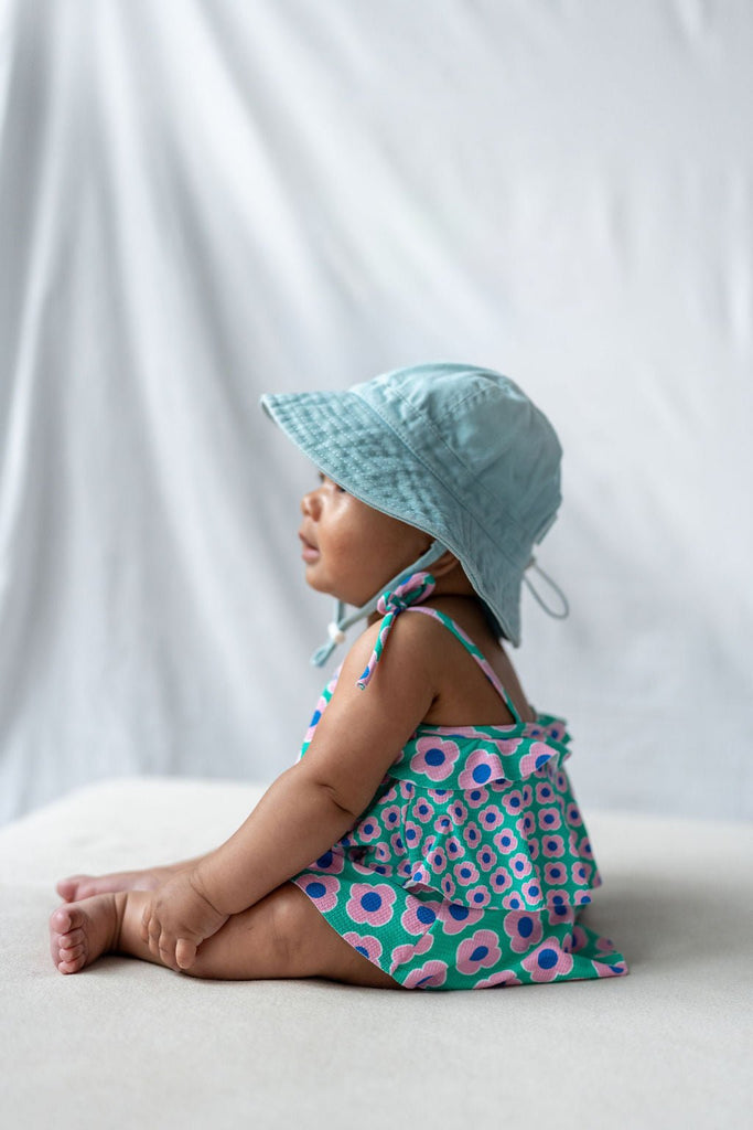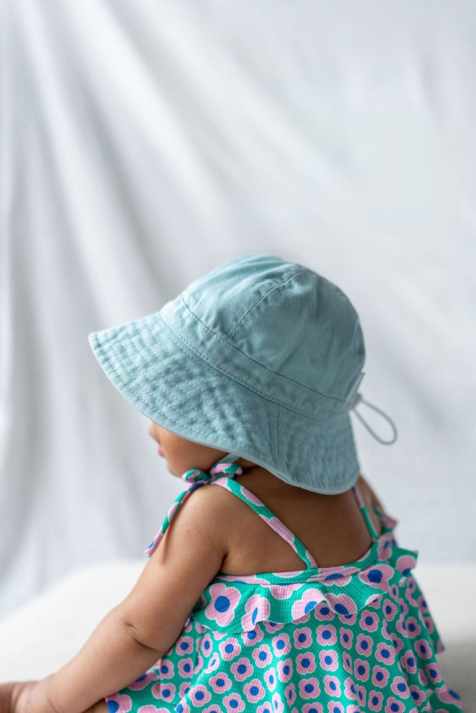 Baby sun hat with a sweet blue cotton canvas fabric.