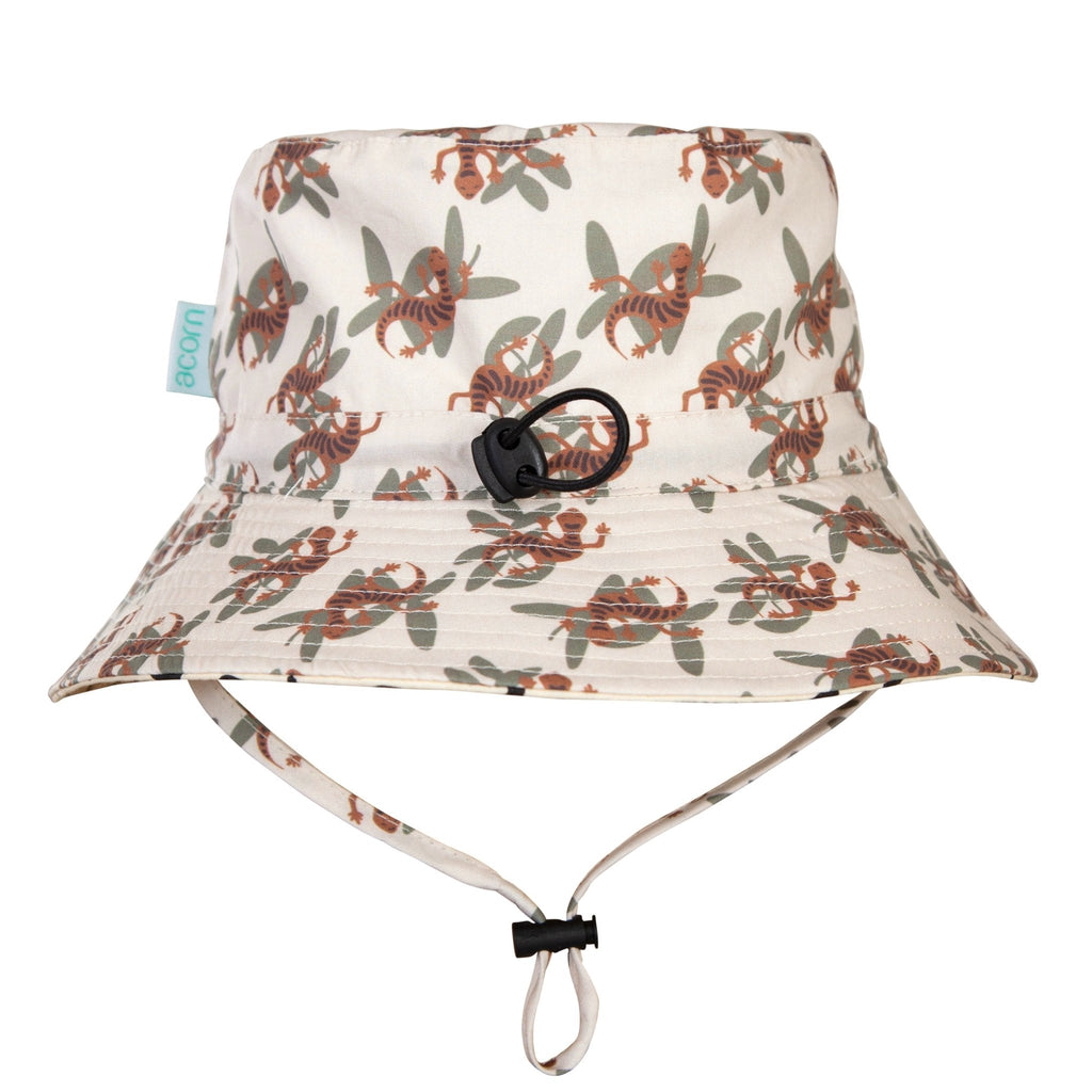 The perfect go-with everything bucket hat with a natural base and cool geckos print.