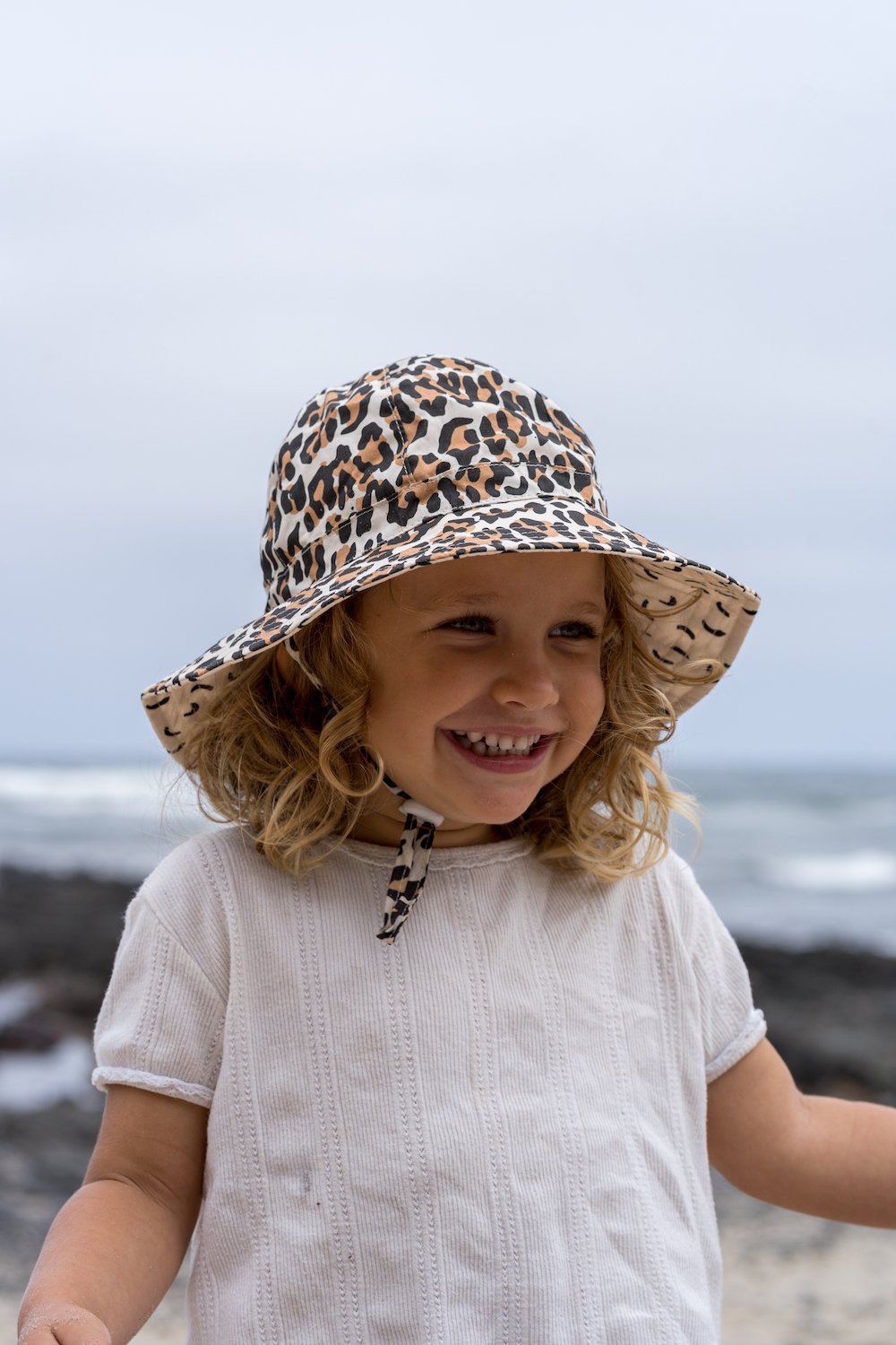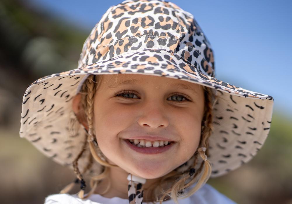 I love this hat so much. It provides a great amount of shade, stays put on my daughter's head, dries quickly, is lightweight, and looks cool! I love it so much that I got one in every size so she can continue wearing it every year. Leopard never dates! Haha.