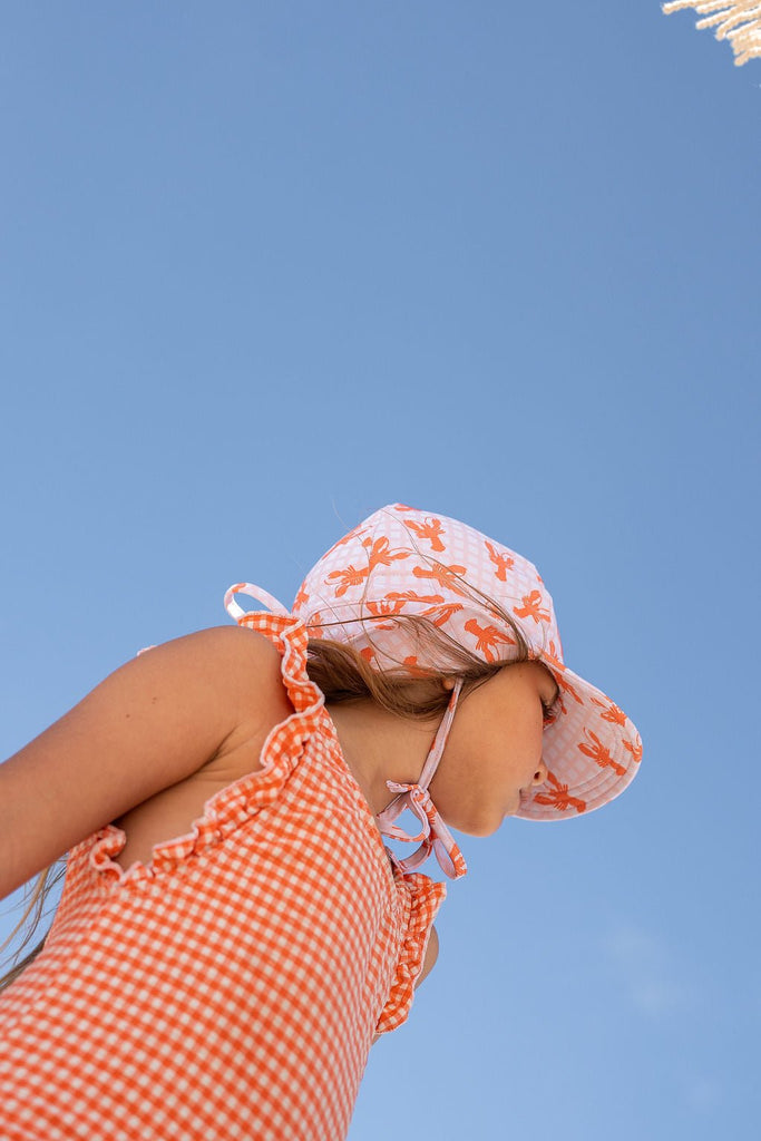 Pinch of fun, splash of style - our Pink Lobster Swim Flap Cap is ready for seaside adventures!