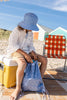 Waterproof swimming/ beach/ library bag in a blue row boats print.