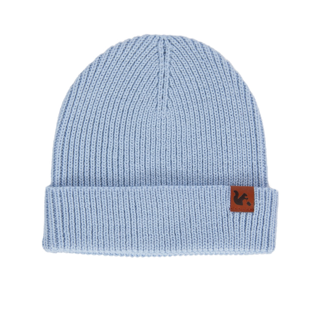 The beanie is finished with a super cute leather squirrel tab at the front, adding a touch of fun and whimsy.