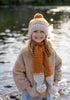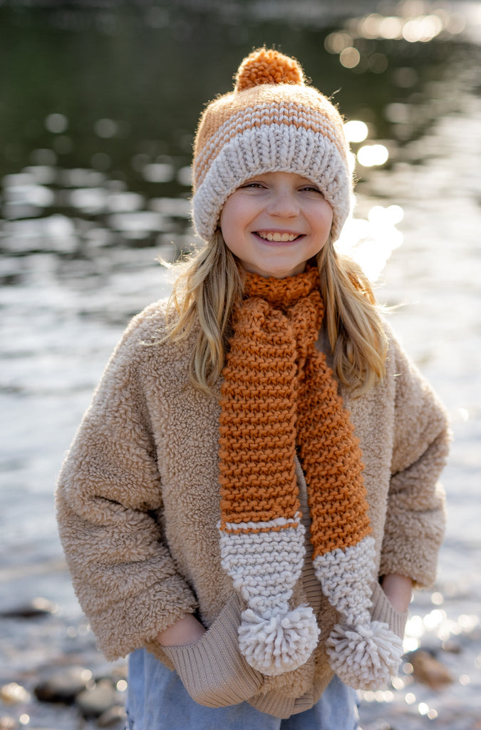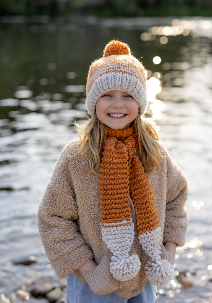 This luxuriously soft wool blend knit beanie has a timeless stripe pattern detail, a comfortable and stretchy ribbing at the face and a fun pom pom on top.
