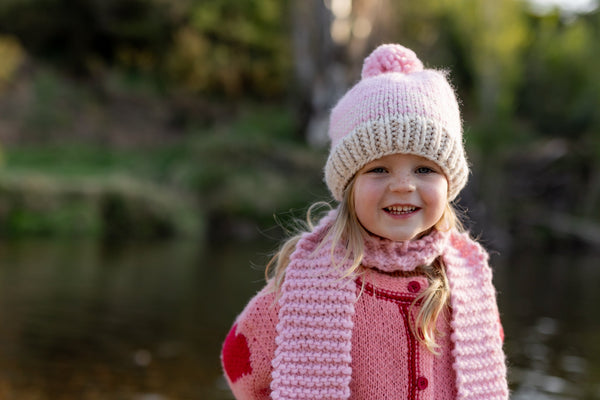 A collection of gorgeous hand-knitted children's beanies, mittens and scarves, in soft sumptuous yarns. Acorn Kids winter hats and accessories for baby through to big kids are ethically hand-made by a Women's Collective.