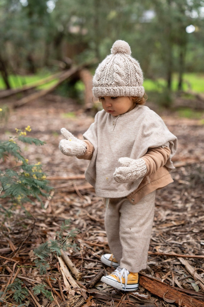The mittens feature a beautiful cable detail on the front and a snug ribbing at the wrist to ensure they stay in place.