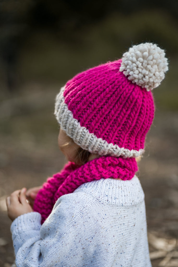 This bundle features a super soft wool blend knit beanie, crafted from chunky yarn in a fisherman's rib stitch—renowned in knitting circles as the stretchiest knit around. It's exceptionally stretchy and incredibly comfortable.