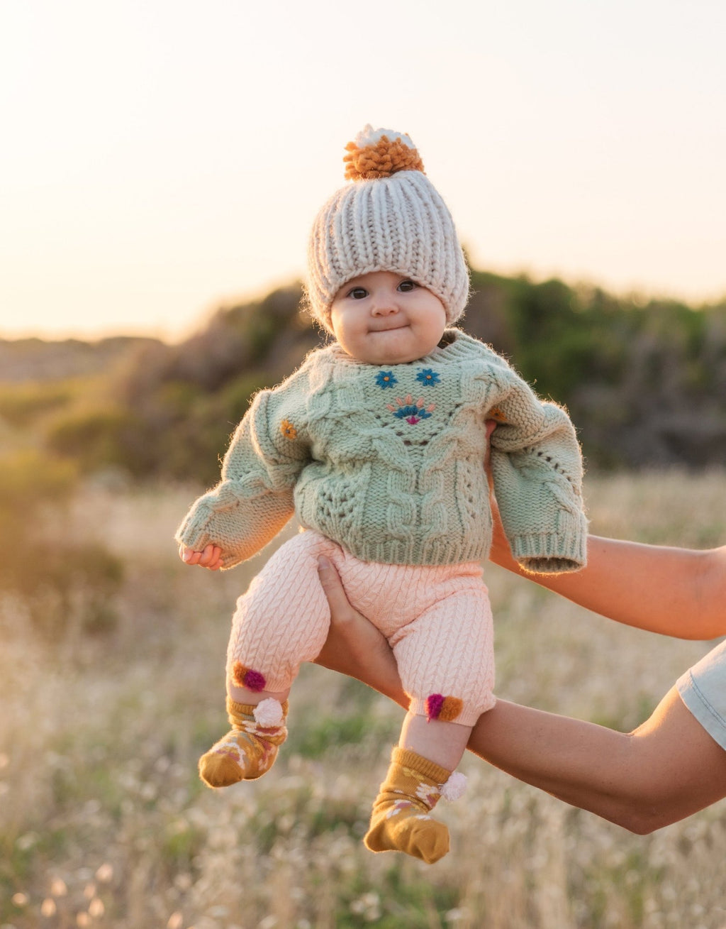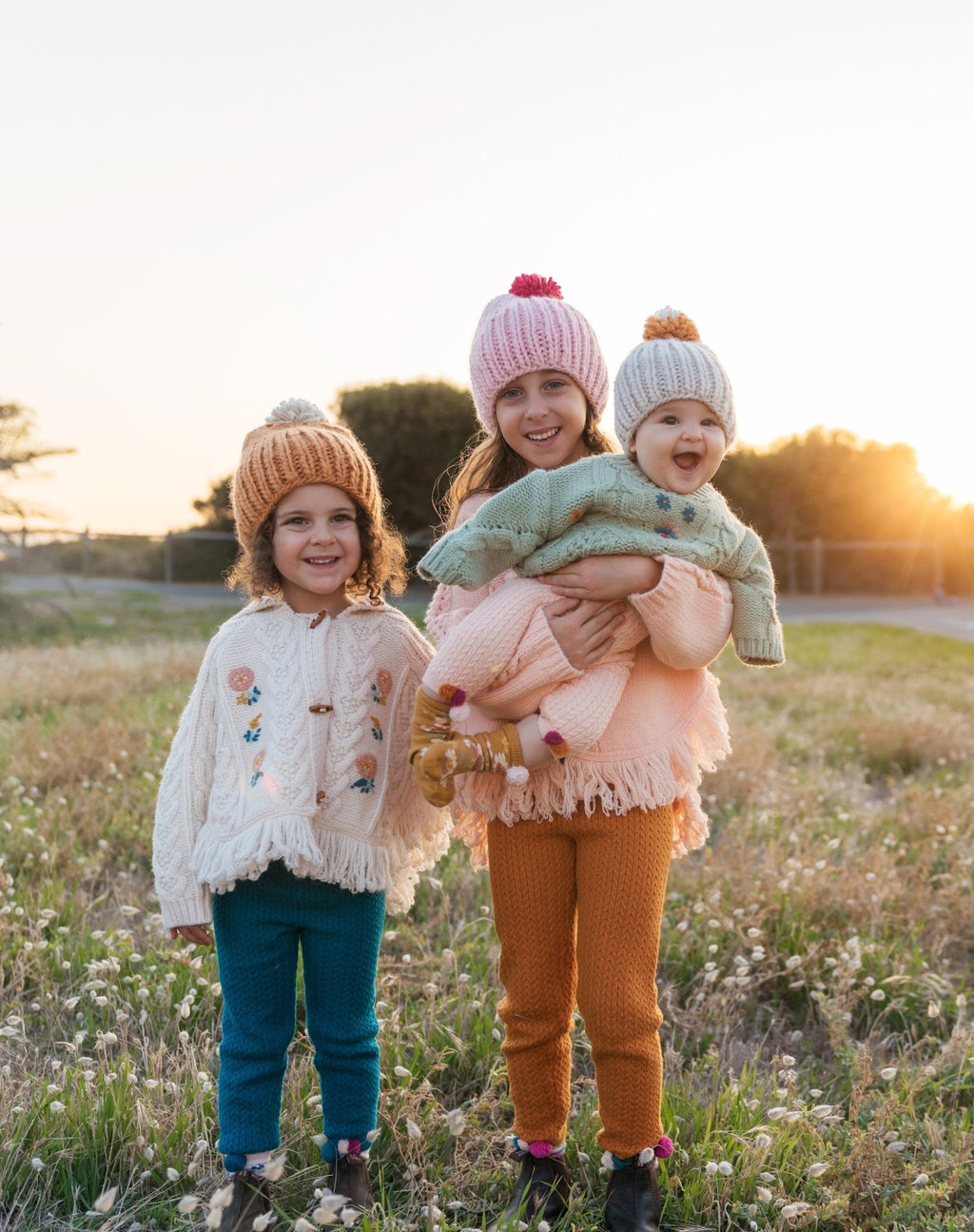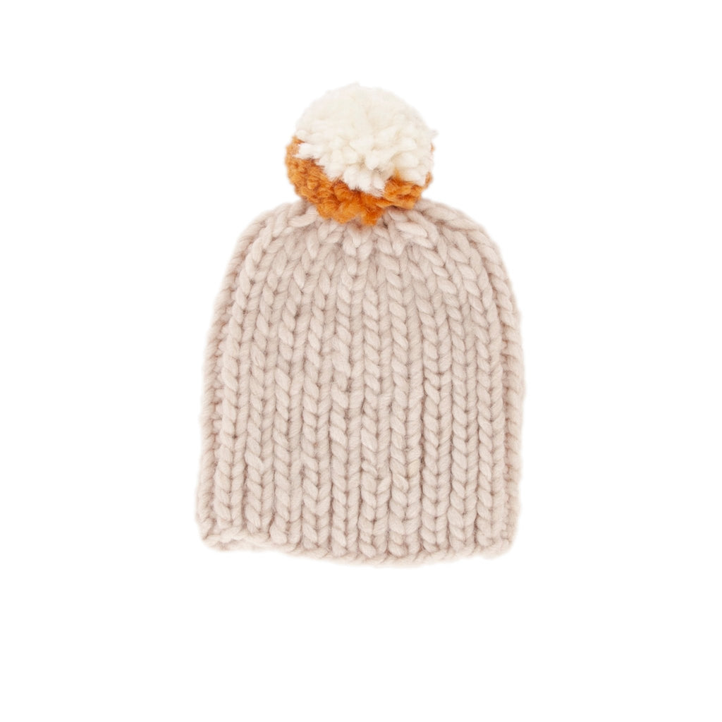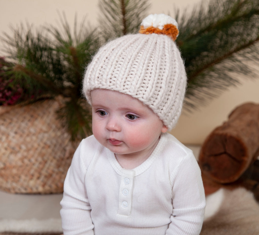 Lovingly hand-knitted, this chunky knit beanie with a fun super sized contrast pom pom is crafted with a fisherman's rib stitch that is super stretchy and extremely comfortable when worn.