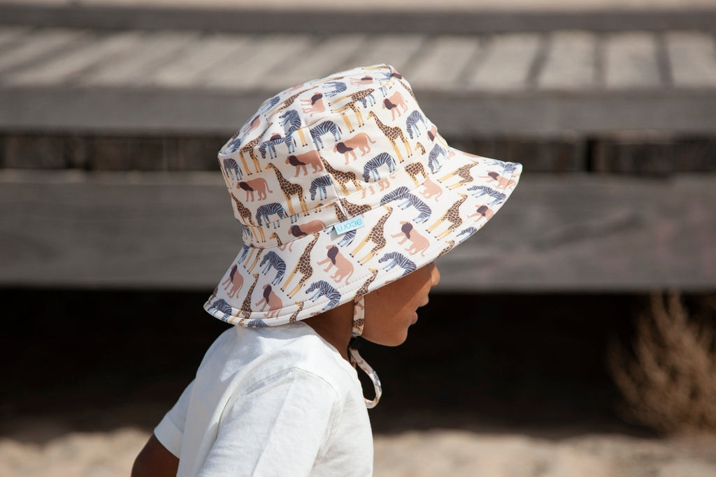 Swim hat with a safari animal print.