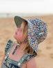 Sunhat with a gorgeous floral print on the outside and a sage and white polka dot print in the inner brim.