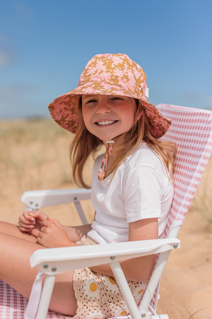 These hats are honestly the best! Quality is wonderful and they have been thoughtfully designed in relation to practicality - uv resistant, wide brim, adjustable around head and neck strap. You get perfect fit and maximum sun protection. The beautiful designs are just a bonus - my 3yr old picked out this design and she couldn’t be happier!