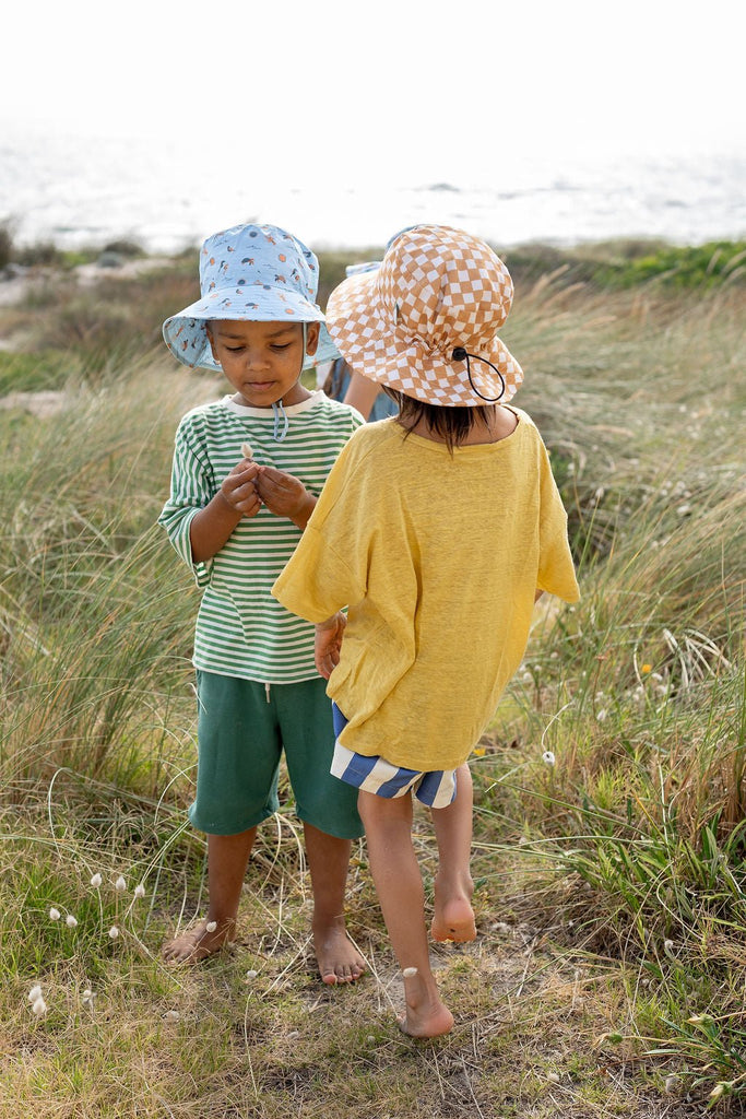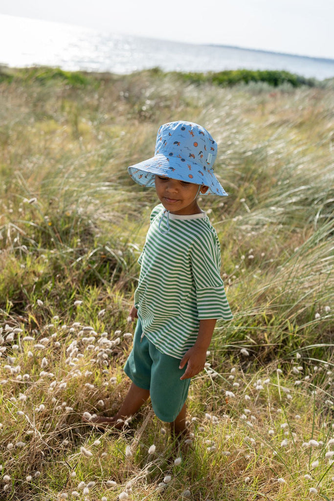 Dive into ocean-inspired fun with the Sea Life Bucket Hat - perfect for sunny days and beach adventures! Featuring a sea inspired print featuring lobsters, sea horses and turtles. The original artwork was designed in Melbourne by artist, Jacinta Weir.
