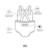 Adjustable straps with multiple button holes to allow for growth and the perfect fit. The straps can also be crossed over at the back to ensure they stay on.