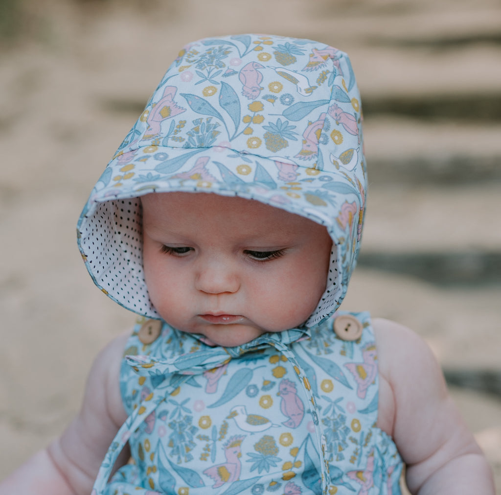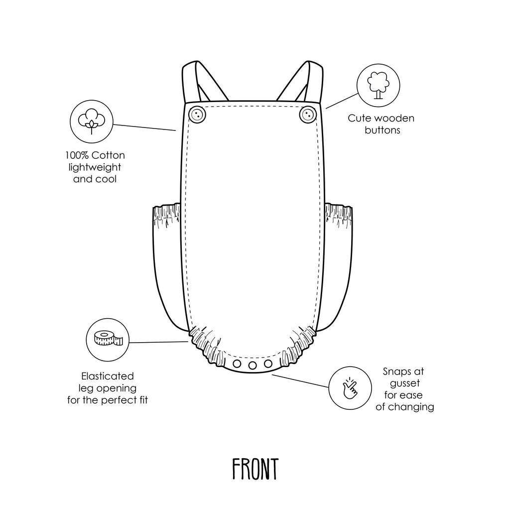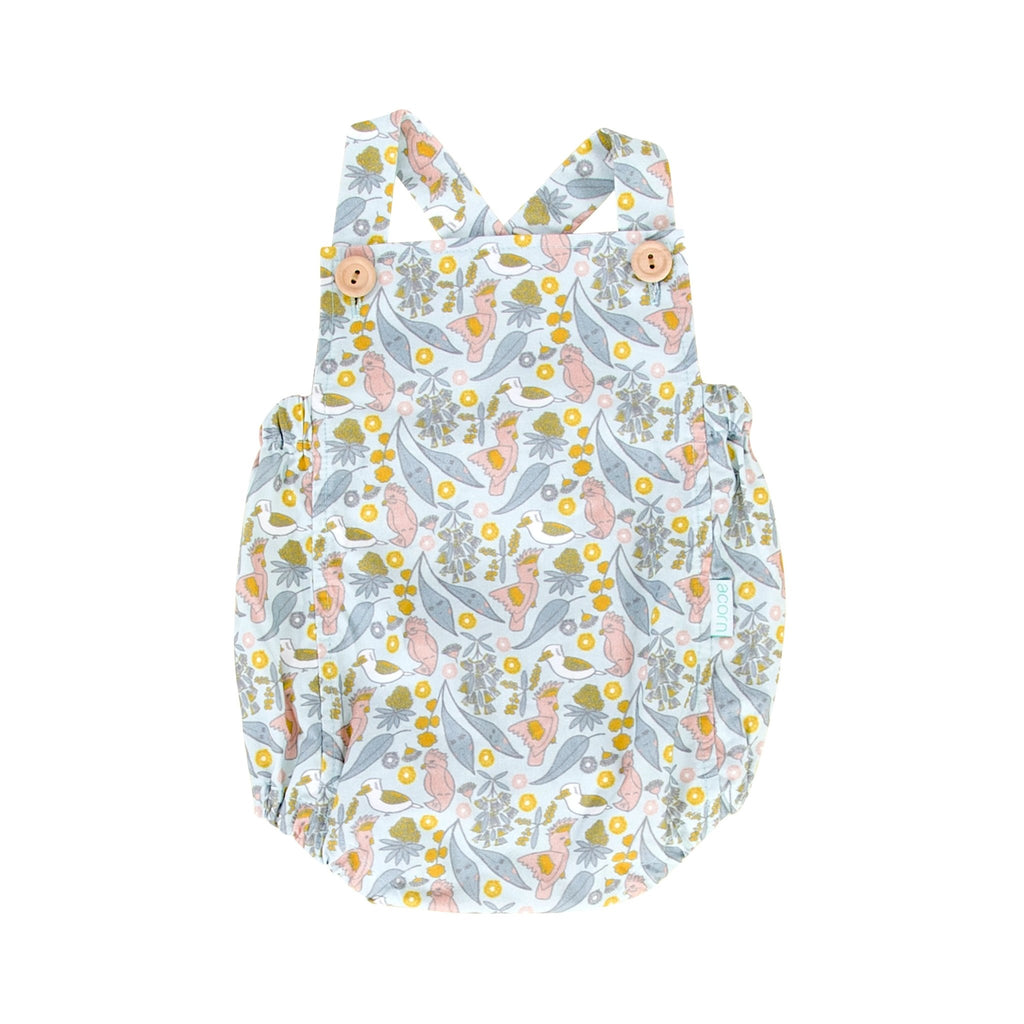 Adorable baby romper with a Australian animals and natives print designed in Melbourne by Jacinta Weir from Two Little Ducklings. A prefect summer outfit for outing with your little one.