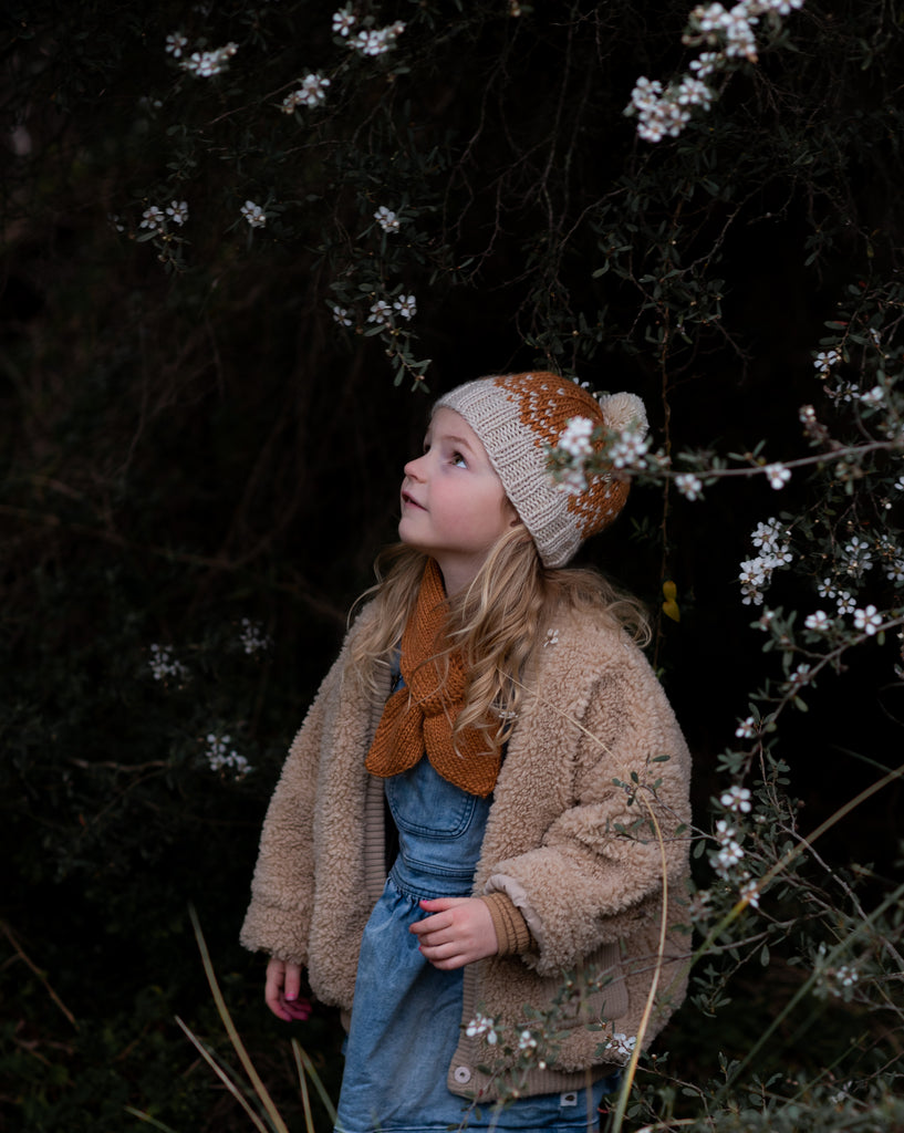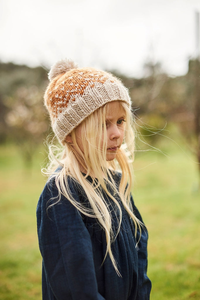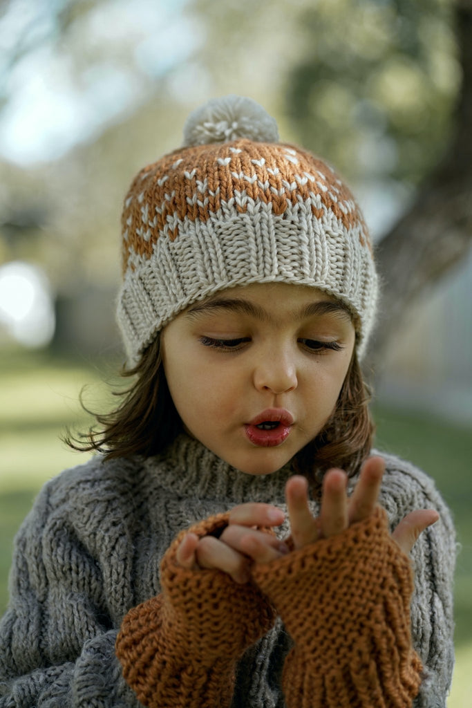 Lovingly hand-knitted with its sweet snowflake design, a Pom Pom on top and a soft stretchy ribbing around the face.