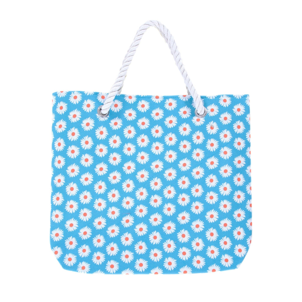 Daisy printed tote bag with rope plaited shoulder strap.