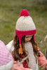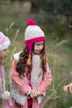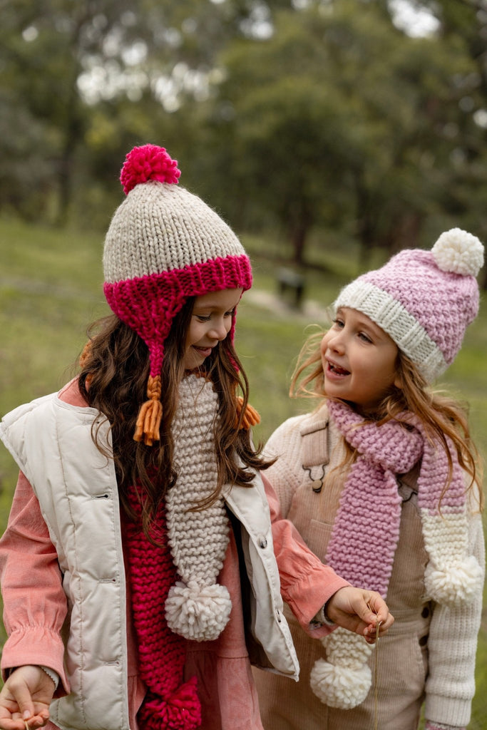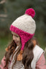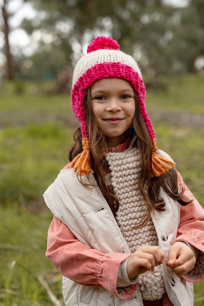 Features a fun pom pom on top and a comfortable and stretchy 2x2 ribbing at the face.