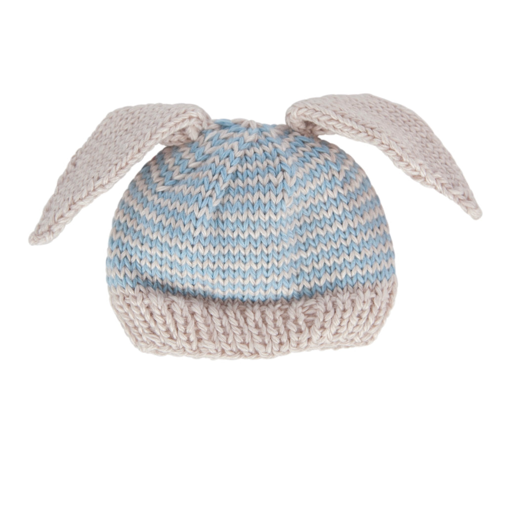This super soft wool blend knit beanie has adorable bunny ears on top and a cute stripe knit pattern. Also featuring a stretchy ribbing at the face that is extremely comfortable when worn and helps keep the beanie in place.