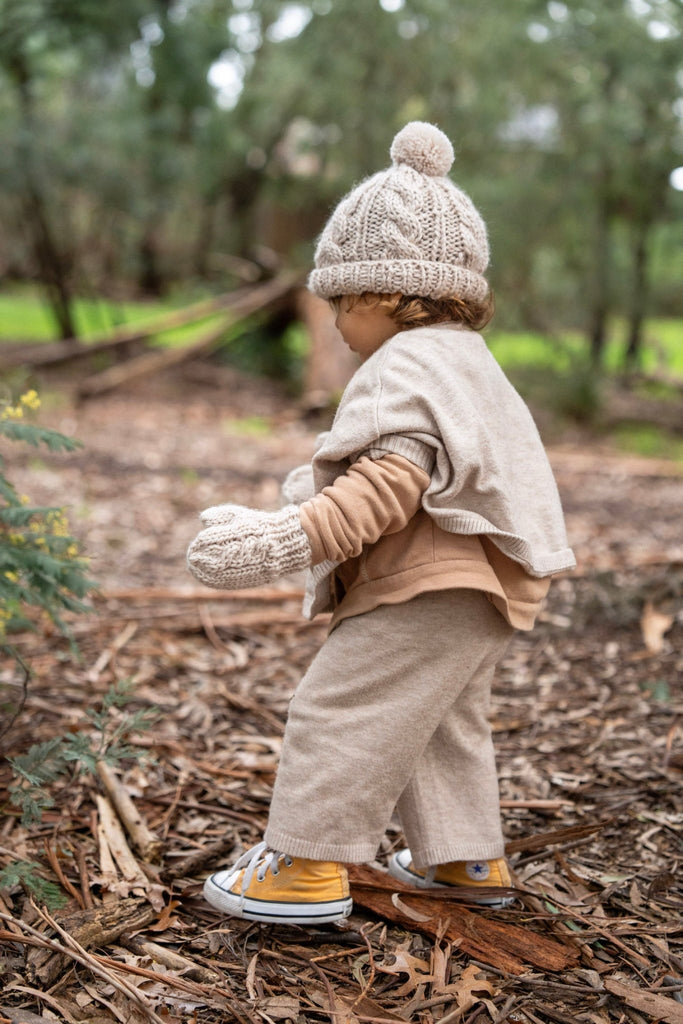 Hand-knitted mittens with a cute cable knit detail on the hand area.