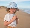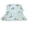 Let their imagination take flight with this gorgeous bucket hat, featuring a mint-based lorikeet print on the outside and a black and white spot print on the inner brim.