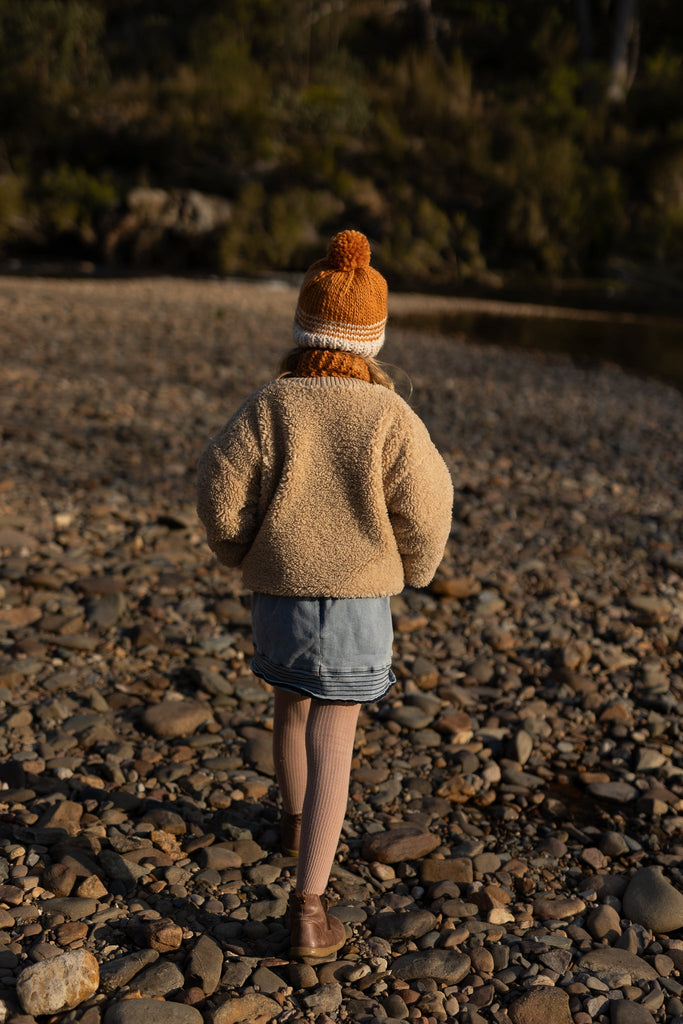 A highly functional and totally fabulous chunky knit scarf here to keep little necks warm and toasty in style.