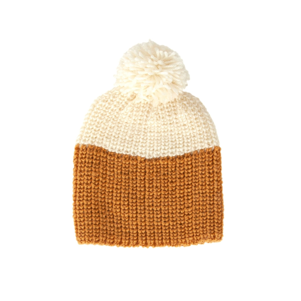 Gorgeous and soft hand knitted slouchy beanie in a fisherman's rib stitch with a pom pom on top and fun two toned design.