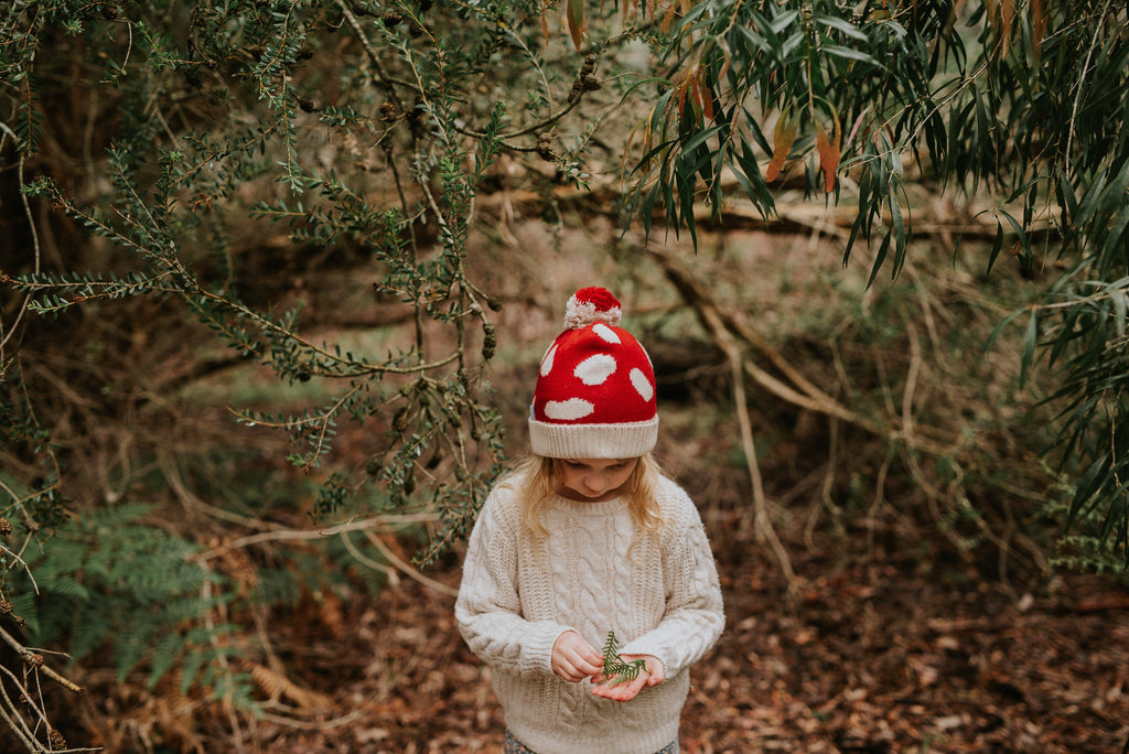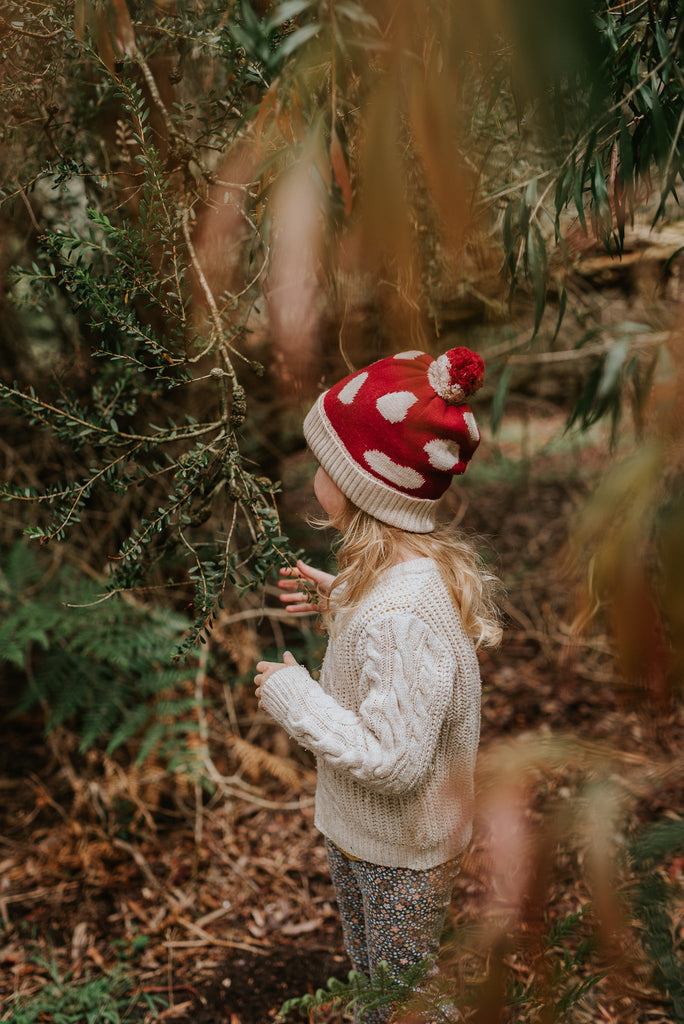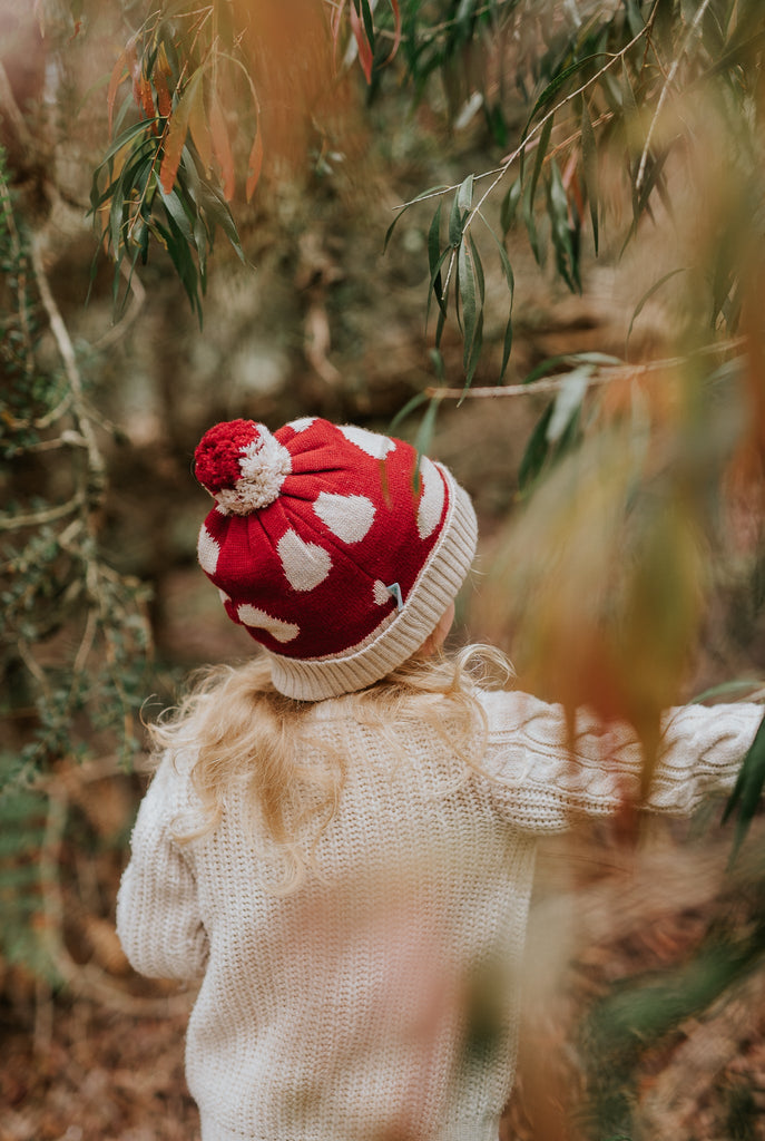 Adorned with a whimsical mushroom pattern, this beanie is perfect for sparking magical outdoor adventures your little one will love.