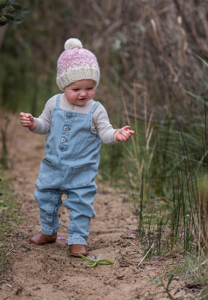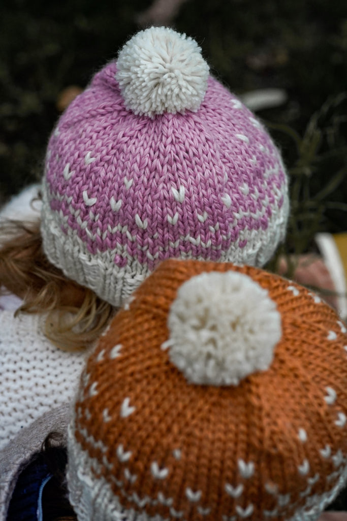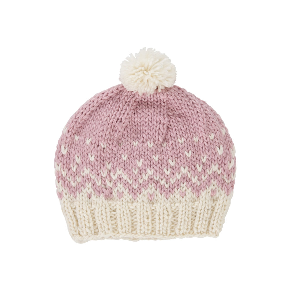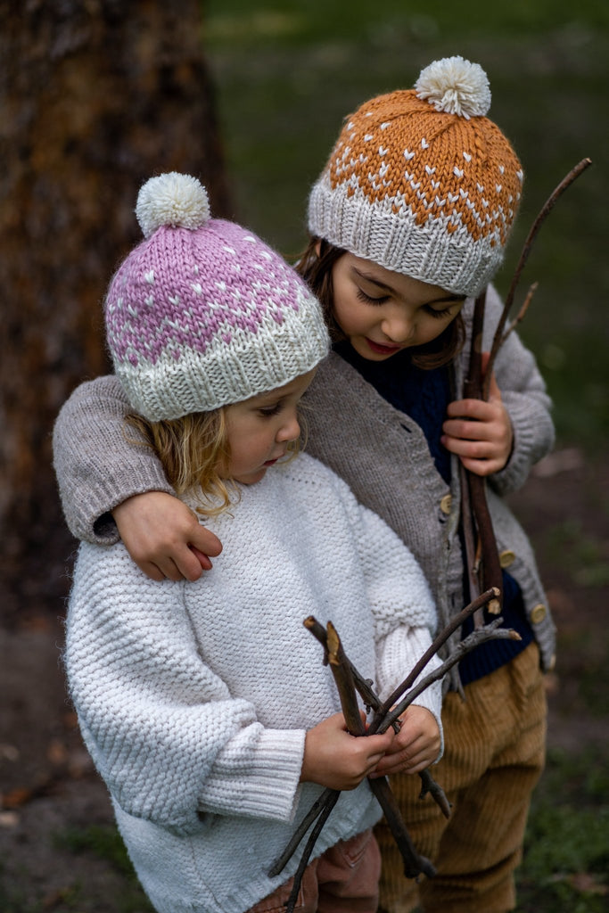 Lovingly hand-knitted with its sweet snowflake design, a Pom Pom on top and a soft ribbing around the face.
