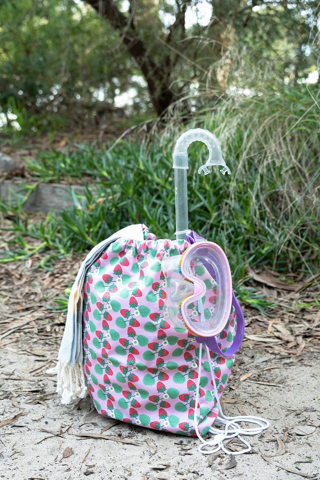 The swim bag features a waterproof shell, making it perfect for swimming, the beach, or even as a library bag. With a drawstring closure, it can be worn as a backpack-style bag. Crafted from 100% polyester, it measures H43 cm x W40 cm.