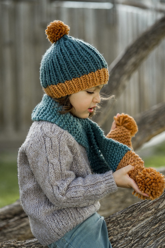 A highly functional and totally fabulous chunky knit scarf here to keep little necks warm and toasty in style.