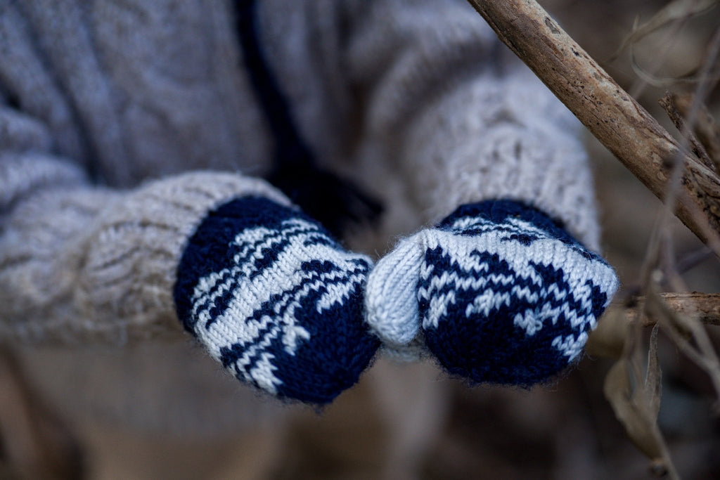 Lovingly hand-knitted with a beautiful two toned pattern around the hand and stretchy ribbing at the wrist for maximum comfort.