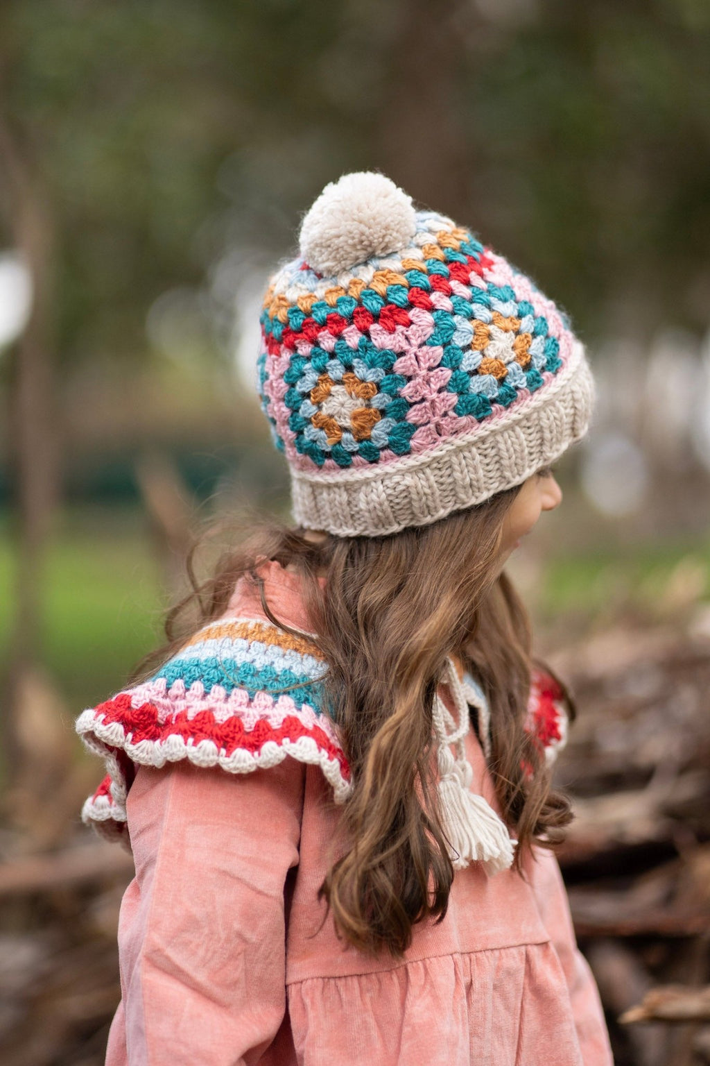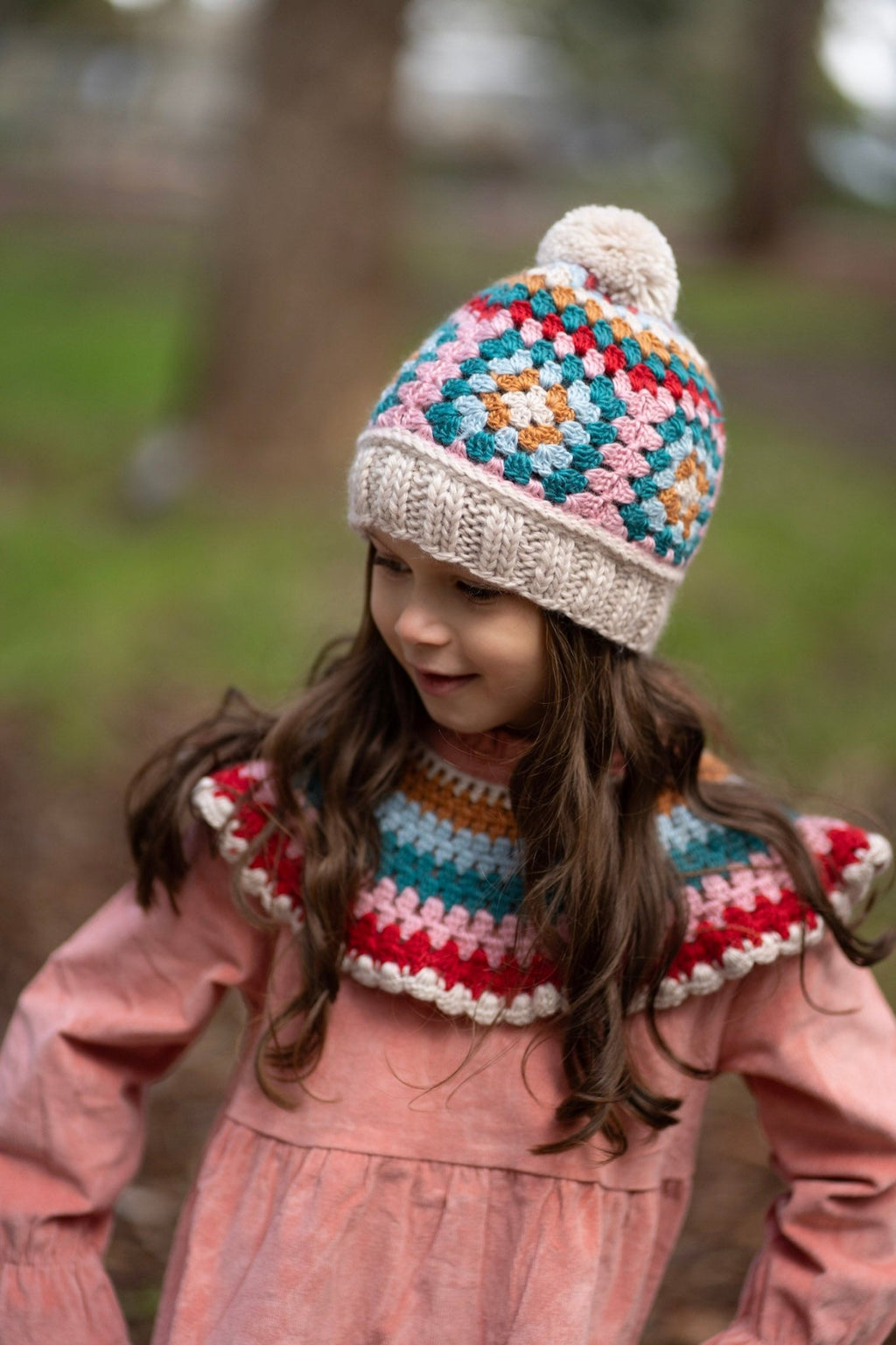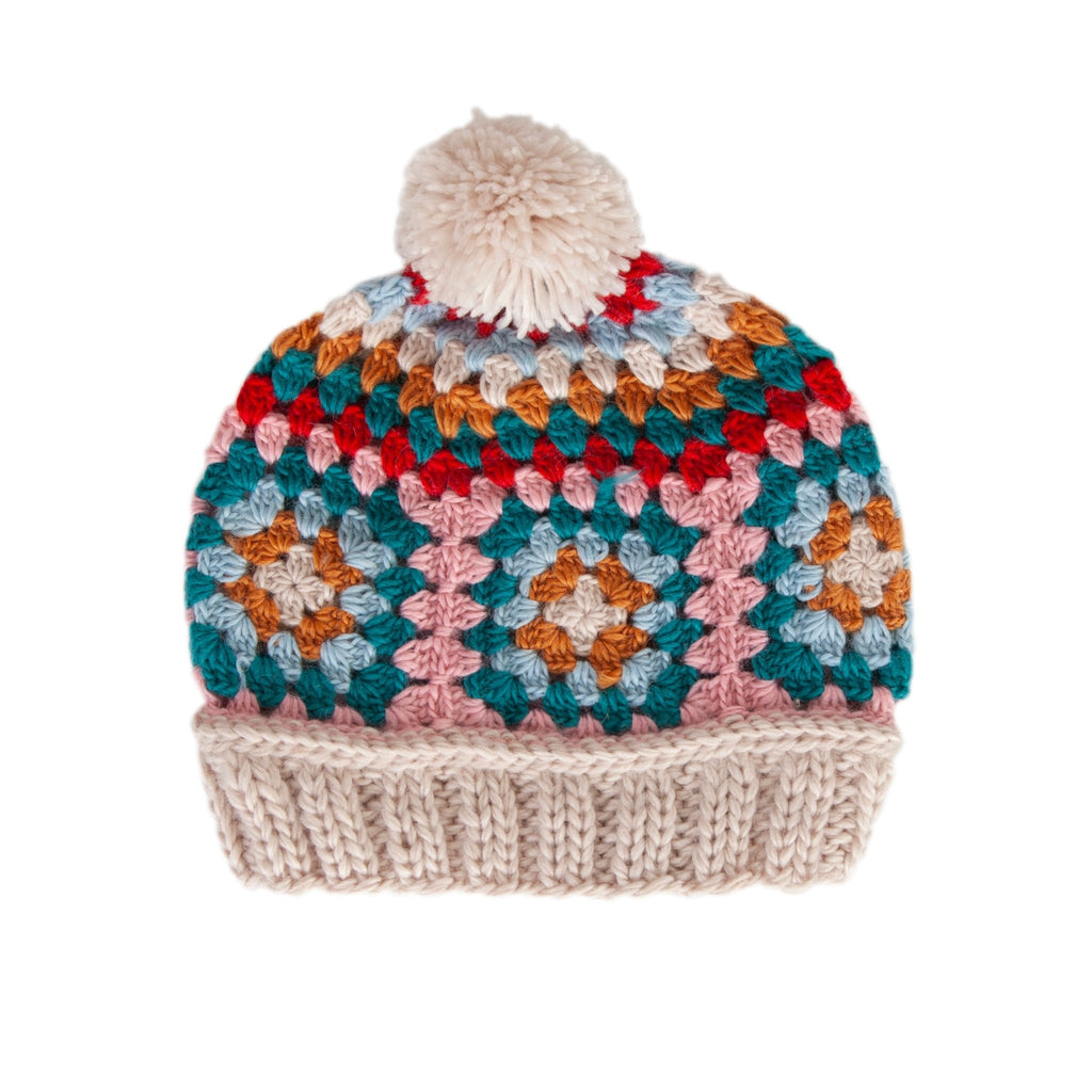 This super soft wool blend crochet beanie with a cool granny square pattern and a comfortable and stretchy 2x2 ribbing at the face.